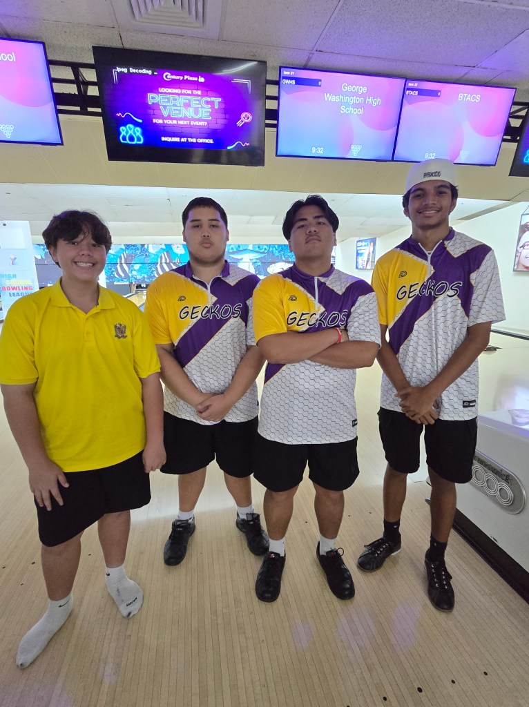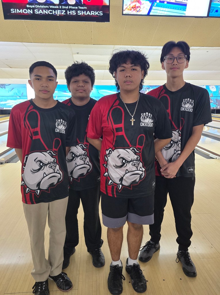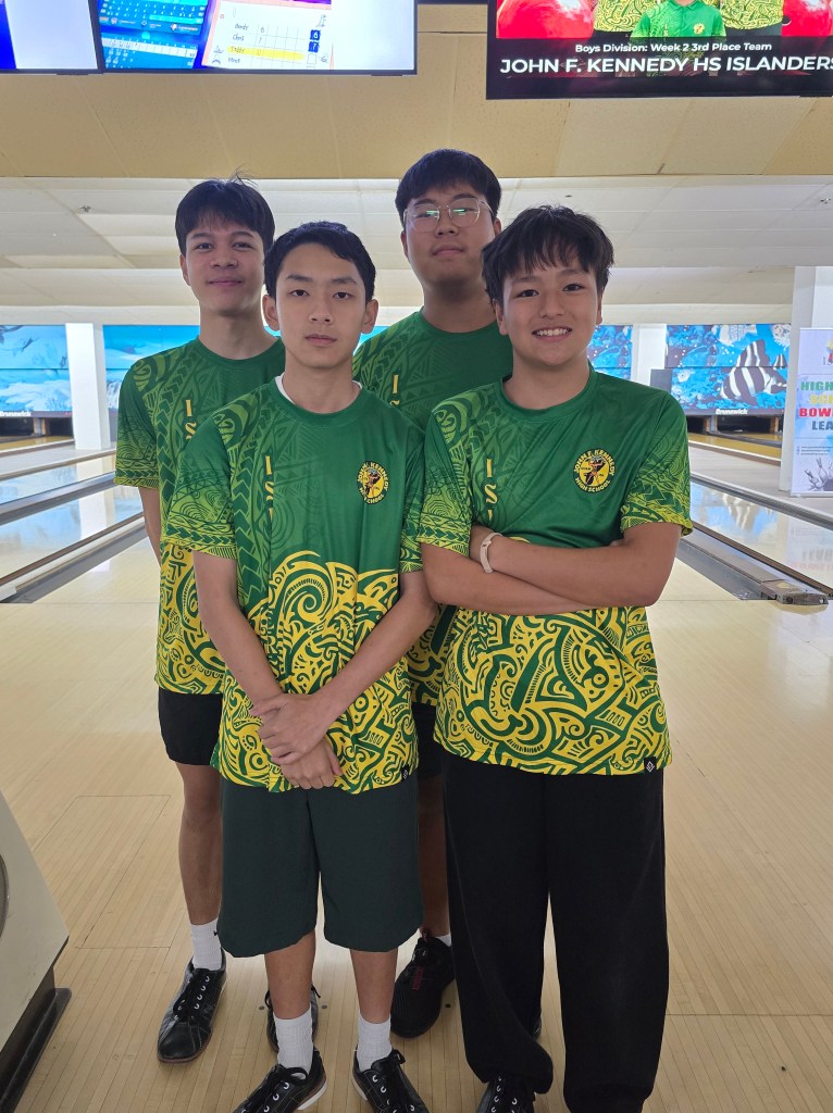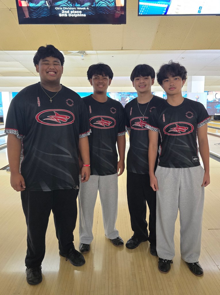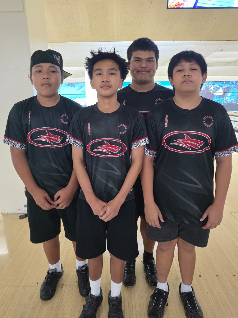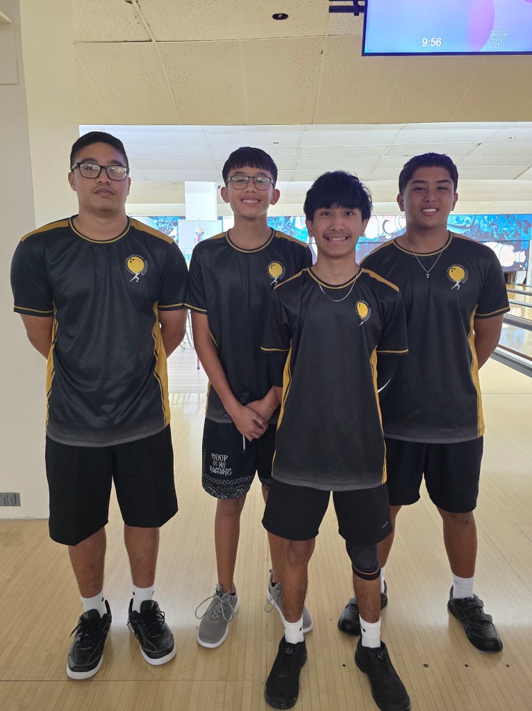 Hot on their heels were the JFK Islanders, who battled fiercely but couldn’t quite close the gap. Despite strong games of 193, 192, and 187, the Islanders—Aidan George, Hajin Lee, Leland De Vera, and anchor Christof Pineda—finished 66 pins behind the Sharks. Their resilience keeps them in the driver’s seat, holding onto the overall points lead by just half a point.